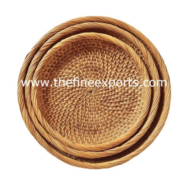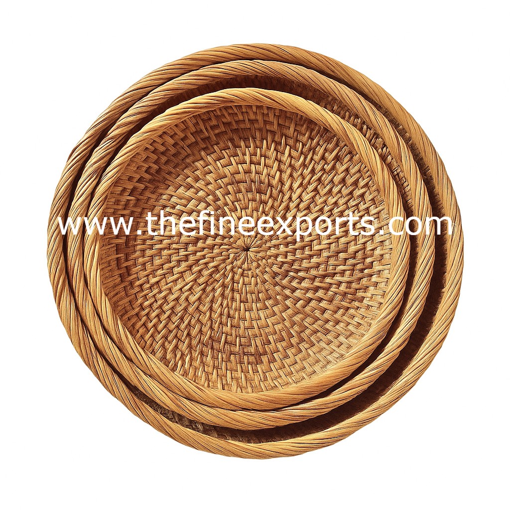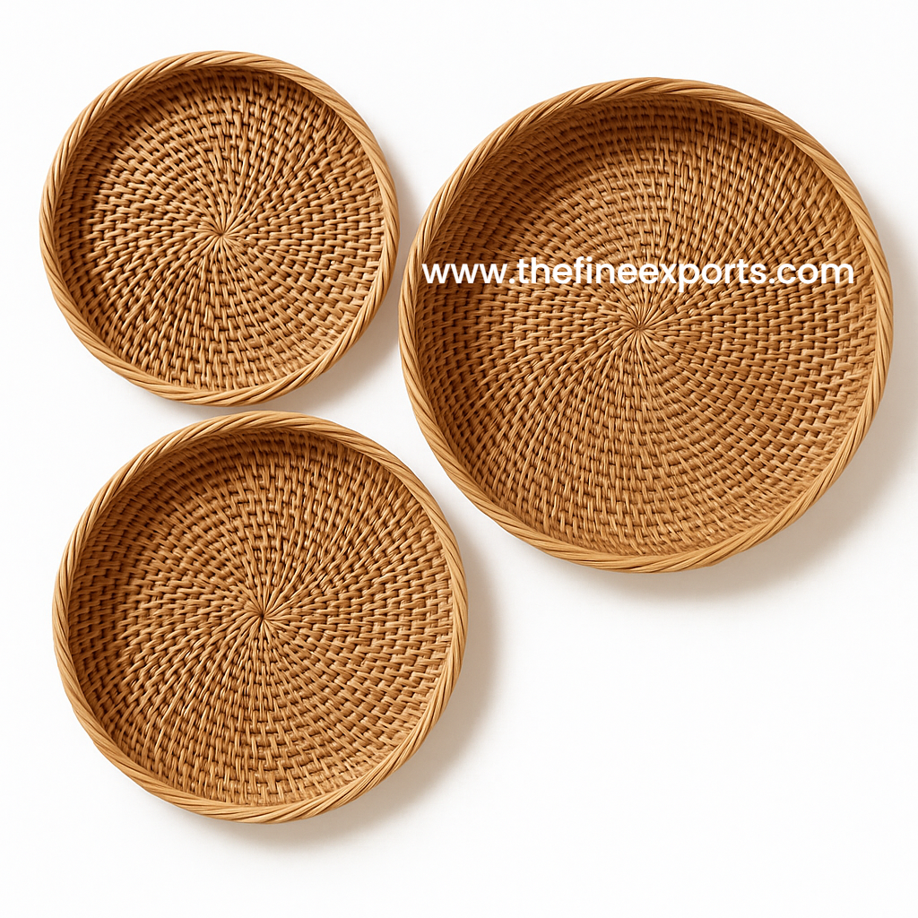 “Crafted from 100% natural rattan, this charming round tray adds warmth and function to any setting. Its handwoven design brings a touch of nature-inspired elegance, making it ideal for serving, organizing, or styling your home. Offered in three sizes or as a complete set, these trays are both practical and decorative accents for any space.”